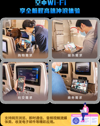 在打开飞行模式下,想要用手机等移动设备刷网页、聊微信、看小说,就可以选择使用空中Wi-Fi功能。