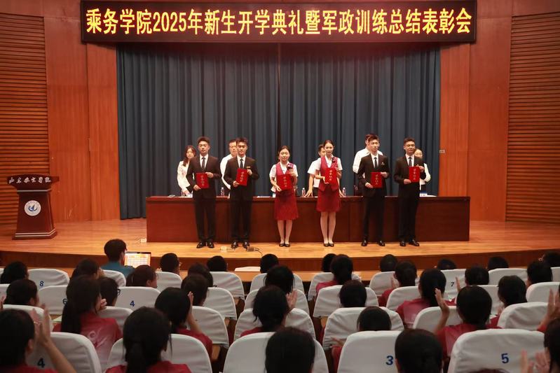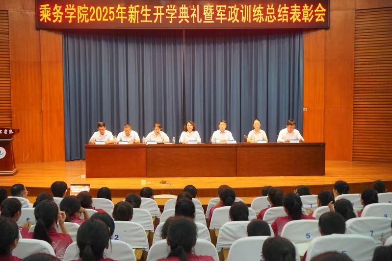 9月22日,乘务学院在明德报告厅召开2025级新生开学典礼暨军政训练总结表彰会,党委书记张凤英、院长周江涛出席会议,党委副书记边小玲、副院长杨宁霞,全体教职工及500名新生参加会议。