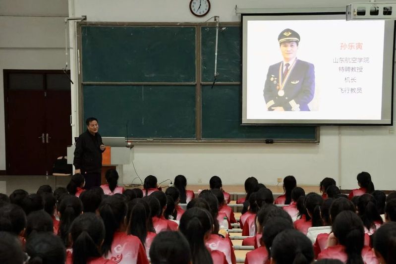为上好航空特色“大思政课”,将思想政治教育贯穿人才培养全过程,帮助 2025 级新生筑牢专业根基,乘务学院于近日在8号教学楼305教室举办航空大讲堂活动,邀请东方航空公司五星机长、飞行教员、民航山东监管局原副局长、二级巡视员孙乐寅为2025级新生讲授专题研讨课。院长周江涛主持研讨课,党委副书记边小玲、副院长杨宁霞、2025级学生辅导员及470名本专科新生聆听了研讨课。