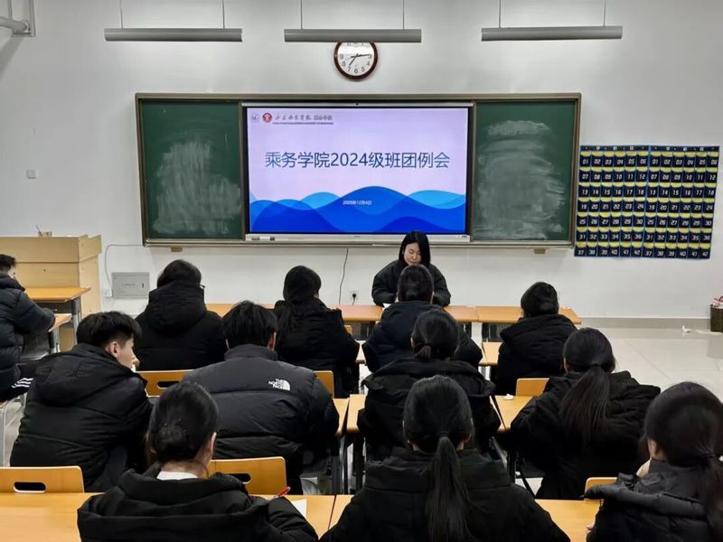 12月4日,乘务学院在航空3号楼召2023、2024级班团例会。全体2023级、2024级班长及团支书参会。会议围绕班团建设整体规划、工作方向展开深入讲解,明确学院人才培养目标与学生发展路径,并对近期学生管理、安全教育等重点工作进行部署。本次会议进一步厘清了班团骨干的职责使命,为扎实推进班级建设、提升乘务人才培养质量筑牢根基。