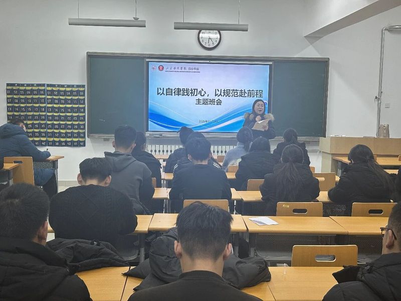 11月30日,乘务学院在航空3号楼,面向1079名在校生召开“以自律践初心,以规范赴前程”主题教育班会。班会聚焦学院基础管理要求、学生行为规范及职业发展核心准则,通过案例讲解、互动交流等形式,引导学生自觉遵守准军事化管理条例,为个人成长成才筑牢思想根基与行为底线。