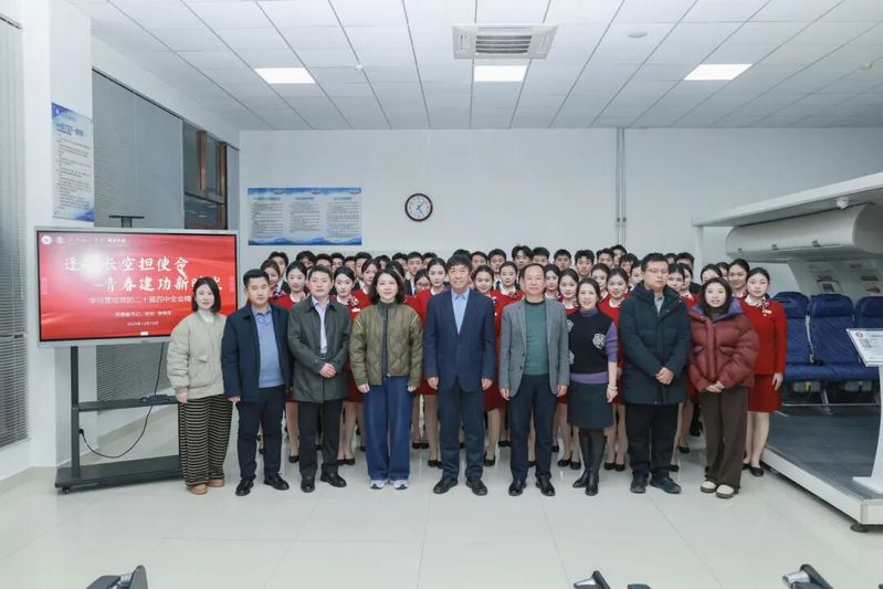 12月16日,学校党委副书记、校长李伟年走进乘务学院,以“逐梦长空担使命 青春建功新时代”为题,为师生学习贯彻党的二十届四中全会精神讲授专题思政课。乘务学院党委班子成员、全体辅导员、学生党员、入党积极分子和学生干部代表共同聆听了思政课。