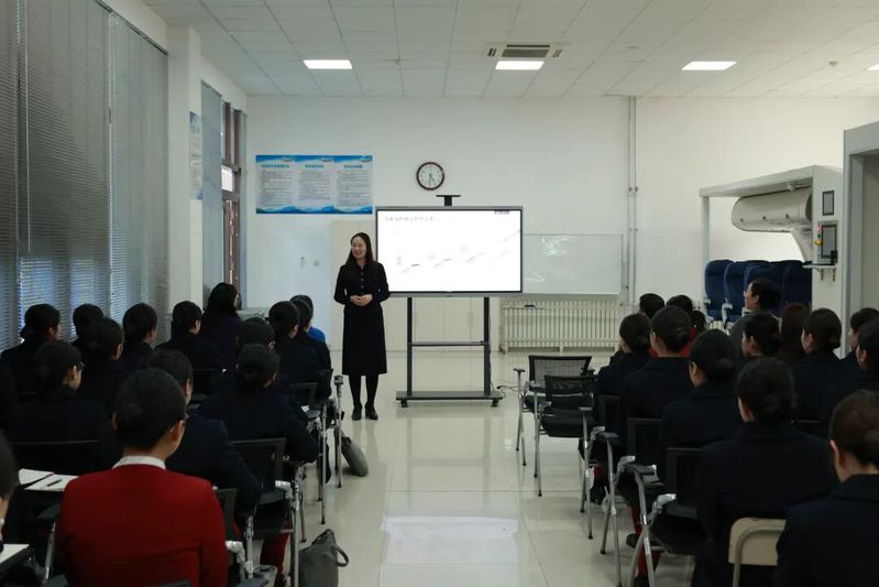 为深入推进“大思政课”品牌建设,3月21日,乘务学院在乘务实训中心开展“客舱里的思政课”优秀传统文化教育,曲阜师范大学马克思主义学院教授肖芳应邀担任主讲,35名学生代表在真实客舱环境中体验了一场别开生面的思政课堂。
