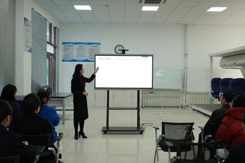 为落实《山东航空学院本科教育教学审核评估整改方案》要求,全面做好本科教育教学审核评估整改工作,3月21日,乘务学院在“教学质量提升月”系列活动中,邀请全国高校教师教学创新大赛二等奖、山东省教师教学创新大赛一等奖获得者、曲阜师范大学硕士生导师肖芳教授来校,举办教学改革讲座并指导教学创新工作,院长周江涛、副院长杨宁霞及全体教师参加活动。