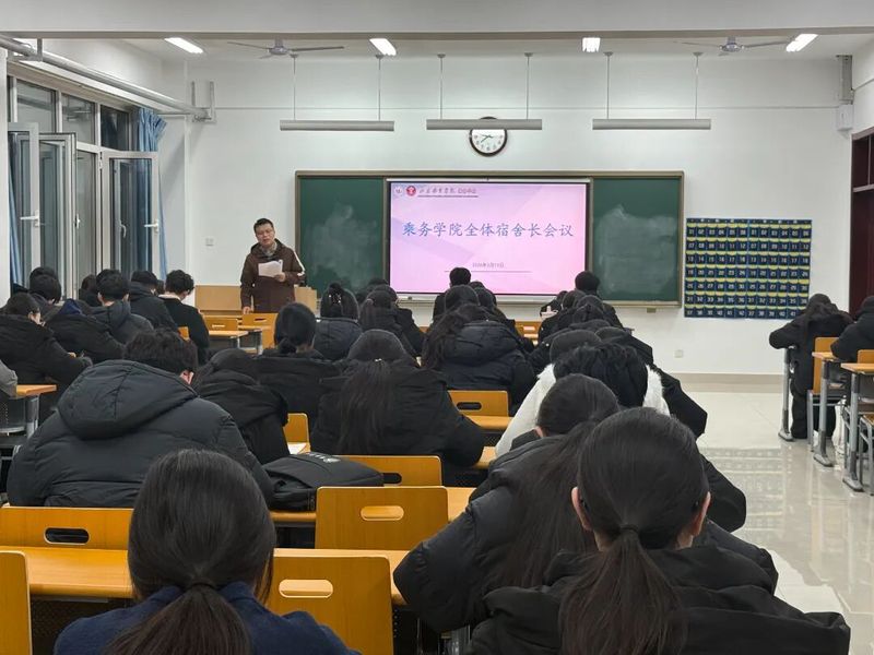 3月13日,乘务学院在航空3号楼召开全体宿舍长工作会议。会议围绕宿舍安全隐患排查、内务规范标准及新学期宿舍安排等工作进行详细部署,进一步压实宿舍长管理责任。本次会议进一步明确了新学期宿舍长工作职责与任务,为打造安全有序、文明和谐的住宿环境,推动学生管理工作提质增效提供了支撑。
